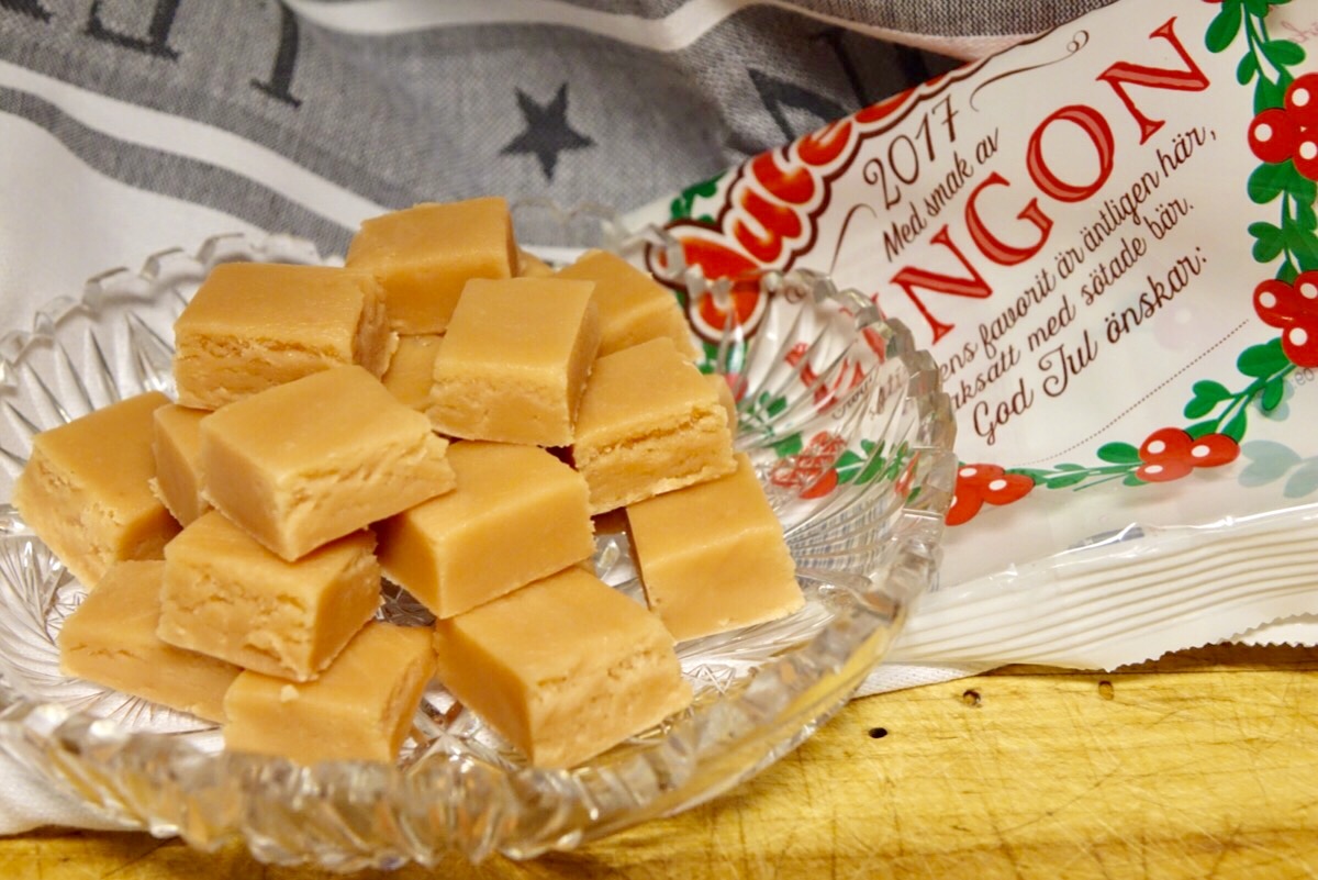 Julbakning och julinspiration har börjat flöda i mitt instagramflöde och jag blir ju sugen att börja göra julgodis också. Här kommer mitt första bidrag, skumtomtefudge lingon. Vanlig skumtomtefudge men med årets smak Lingon. Sött, rosa och väldigt gott! Jag gör nog ett par-tre omgångar av de här under november/december då det är strykande åtgång! Så här gör jag: