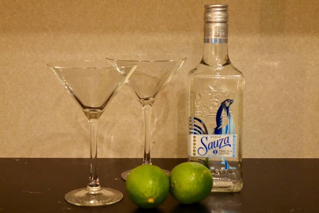 Blanda ingredienserna till drinkarna i en shaker med mycket is. Skaka kallt och häll upp i glas fyllda med is. Gärna med frostad kant av antingen salt eller socker. Vi testade med salt men jag kommer att välja socker nästa gång.