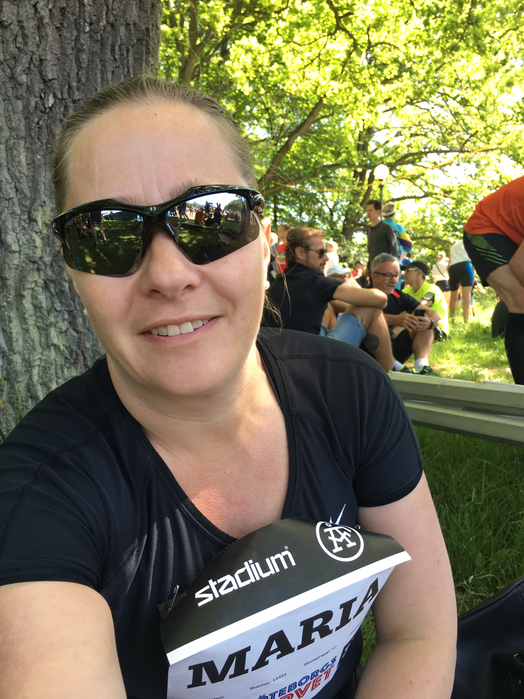 När jag passerat 20 km, så dyker Daniel upp istället och vrålar mot mig – ”Kom igen Maria, ska du sätta pers eller?”. Jag svarade lite svagt ”men jag är trött…”, men han skrek ett par gånger till. I all välmening såklart. Då jag frågade vad klockan var, så insåg jag att jag skulle sätta nytt pers bara jag fortsatte springa. Och det gjorde jag – ända in i mål!