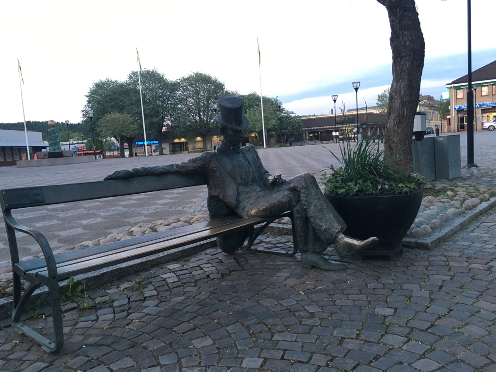 Vi började med att åka söderut från Östersund torsdag 17/5 och vi lämnade stan 15.30. Det är några mil att köra, men det här var det tidigaste vi kunde komma loss. Vi var tre i bilen denna gång. Förutom jag själv och min sambo Daniel, så var också Daniels bror Robert med. Stopp i Mora för att köpa en sallad till middag, som vi också åt i bilen för att en person skulle kunna fortsätta köra. Onödigt med matstopp, då det kändes viktigare att komma fram till sängen. Ett stopp i Filipstad, så vi fick sträcka på benen och även spana in Nils Ferlin, som sitter avslappnad på parkbänken i centrala Filipstad. Väl framme i Trollhättan 00.30 så stupade vi i säng direkt.