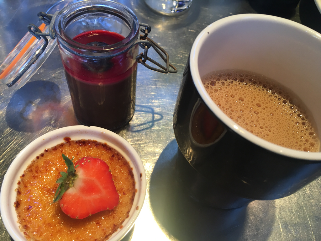 Till slut så fanns det också plats för lite efterrätt samt kaffe. Jag valde en crème brûlée samt en chokladpannacotta. Det fanns även en äppelpaj som jag valde bort, men som Daniel uppskattade så pass, att han tog två st.