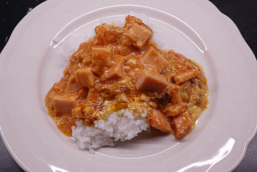 Fördela ananasblandningen på kasslern. Vispa grädde och curry tills det börjar tjockna och bred den ovanpå ananasblandningen. Sätt in formen mitt i ugnen ca 20 minuter. Servera tillsammans med kokt ris och en god sallad.