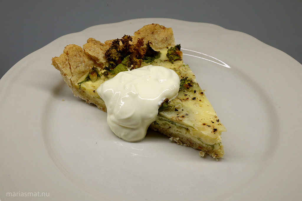 Låt stå tills pajen har stannat och fått en gräddad yta. Servera din ostpaj med grönkål tillsammans med en klick creme fraiche och gärna en sallad (jag hade ingen sallad i ordning när jag tog bilden).