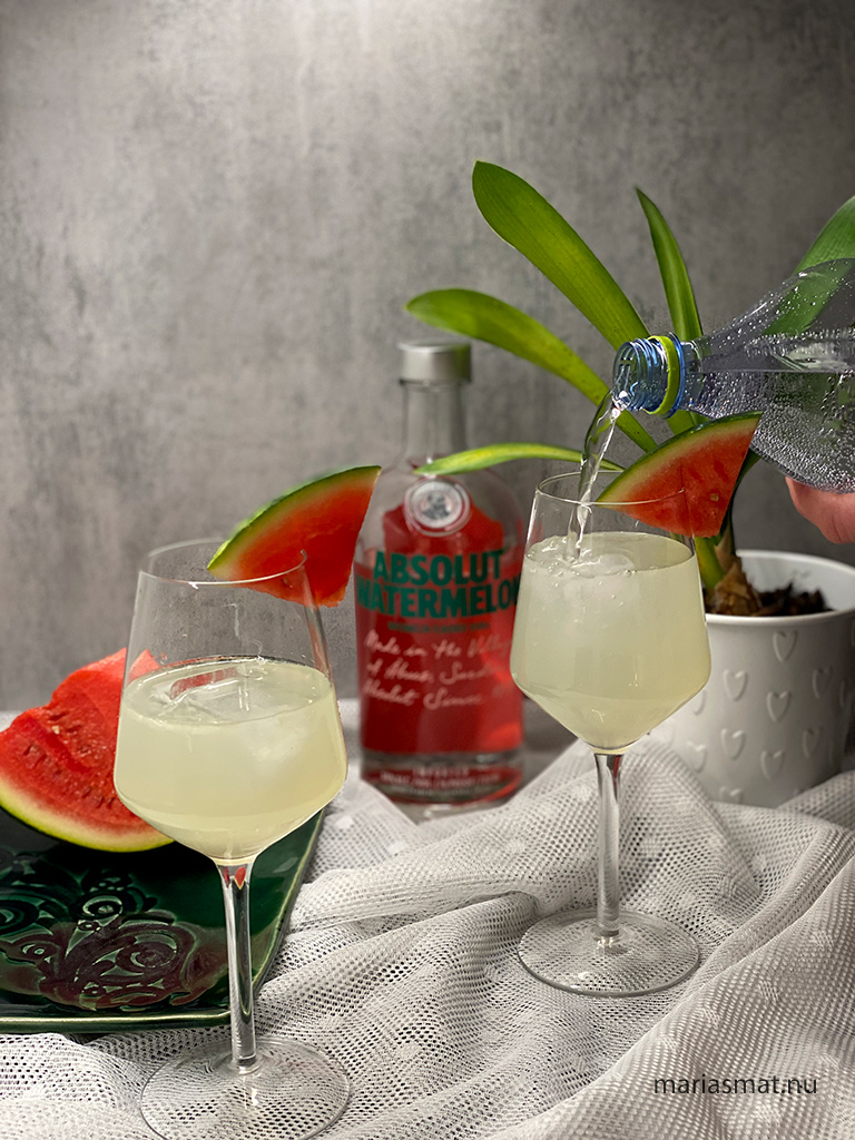 Här kommer nästa drink med nya Absolut Watermelon som lanserades förra veckan. En Watermelon Collins som fredagsdrink. Receptet har jag hittat hos Mattrender och bara kopierat.
