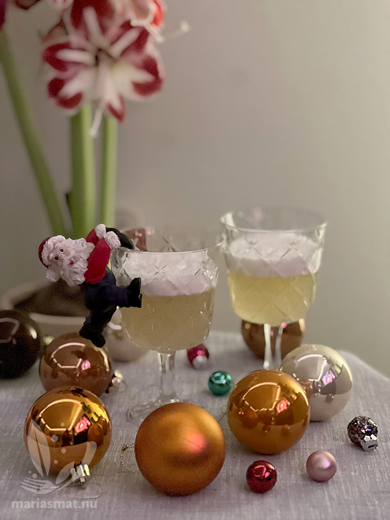 Årets Blossaglögg ska enligt beskrivningen på Systembolagets sida smaka ”Kryddig, söt, aningen rökig smak med inslag av torkad frukt, kanel, kardemumma, kryddnejlika, apelsinskal och vanilj. Ton av whisky.” Inte så uppskattad efter vad jag har hört, men desto fler har gjort årets blossadrink istället (eller kanske en av flera blossadrinkar?).