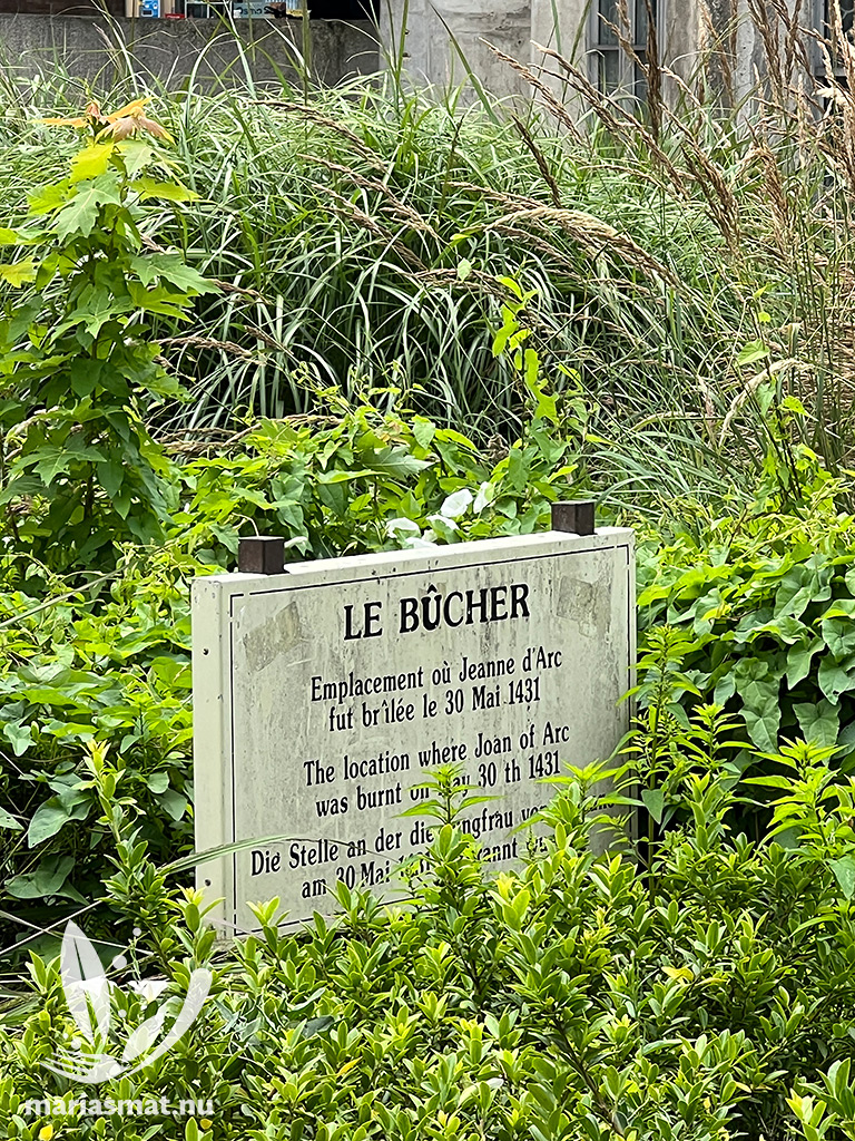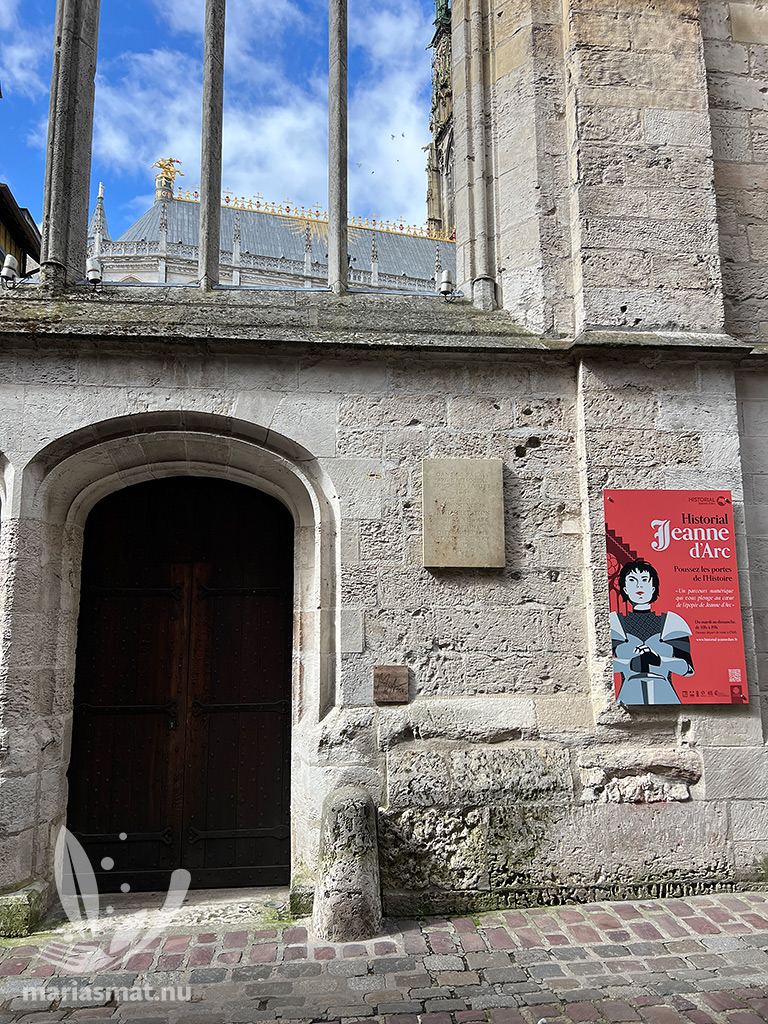 I Rouen finns det mycket om Jeanne-d’Arc. Både ett museum Historial Jeanne d’Arc (som tyvärr var stängt på måndagar), torget Place du Vieux-Marché där hon fick sin dödsdom och brändes på bål, den gamla kyrkoruinen Église Saint Sauveur och den nya kyrkan Église catholique Sainte-Jeanne-d’Arc som är byggd 1979 i hennes namn.