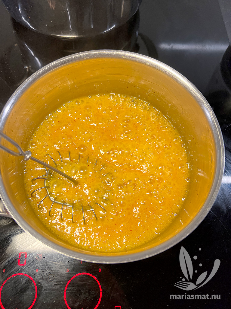 Häll i grädde, sirap, socker och saffran i en panna. Koka upp och låt såsen puttra ihop ett par minuter. Skär gifflarna i bitar och vänd ner dem i såsen och låt dem bli varma. Servera med en kula vaniljglass.
