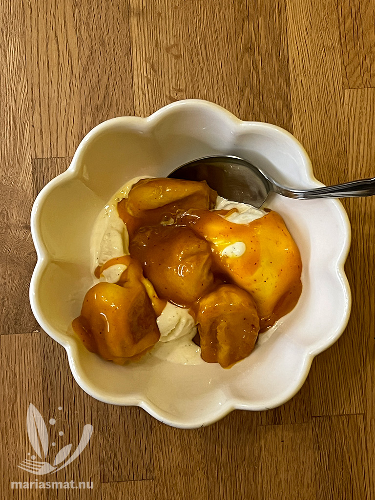 En god vaniljglass, jag kör gärna en svensk glass, tex Sia-glass