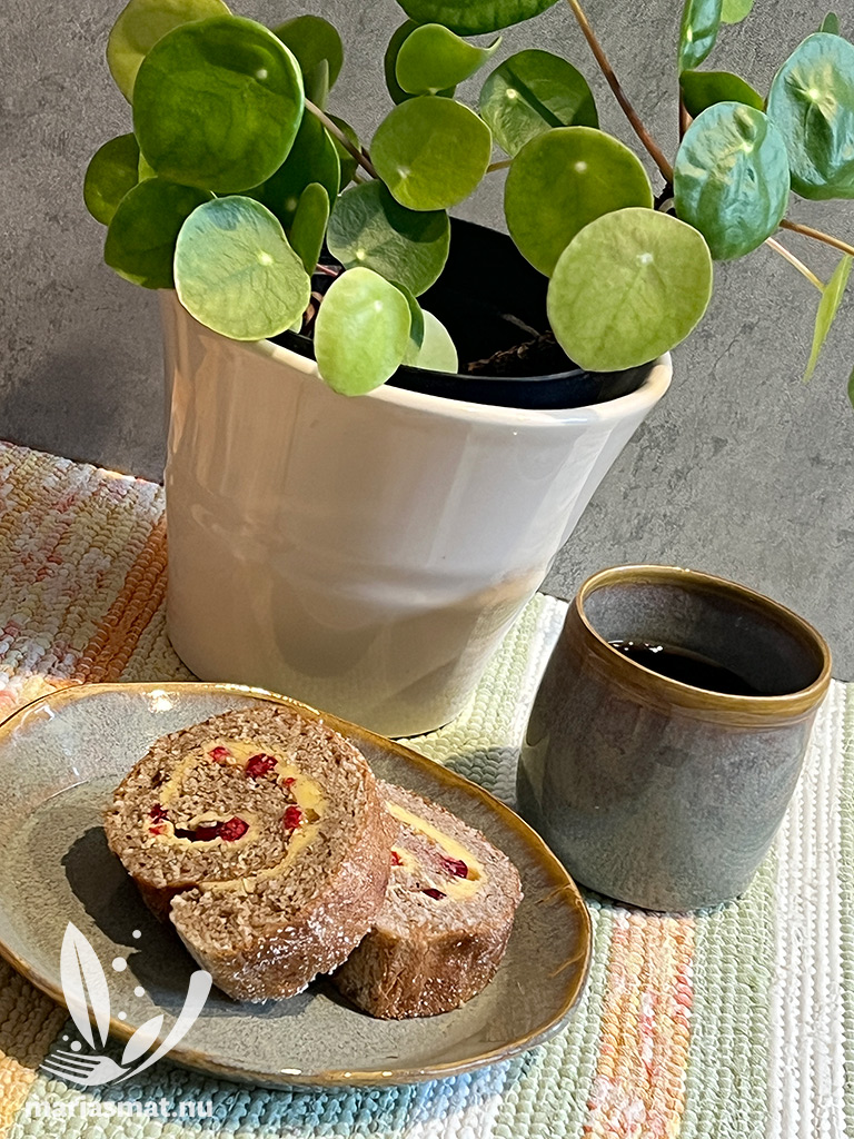 En kollega och jag pratade häromdagen och jag frågade om hon börjat julpynta ännu. ”Nja, inte riktigt än – men svärmor har kommit med de första julkakorna och det är så gott! Smaken av saffran och pepparkakor. Mm”. Och genast vaknade lite mera julkänslor till hos mig. Jag gillar också julens smaker och vi kanske måste börja tidigare för att hinna njuta. Samma kväll så gjorde jag en laddning hemmagjorda pepparkakskryddor och bakade en pepparkaksrulltårta med saffranssmörkräm och lite lingon. Så gott och perfekt att börja preppa frysen med fikabröd.