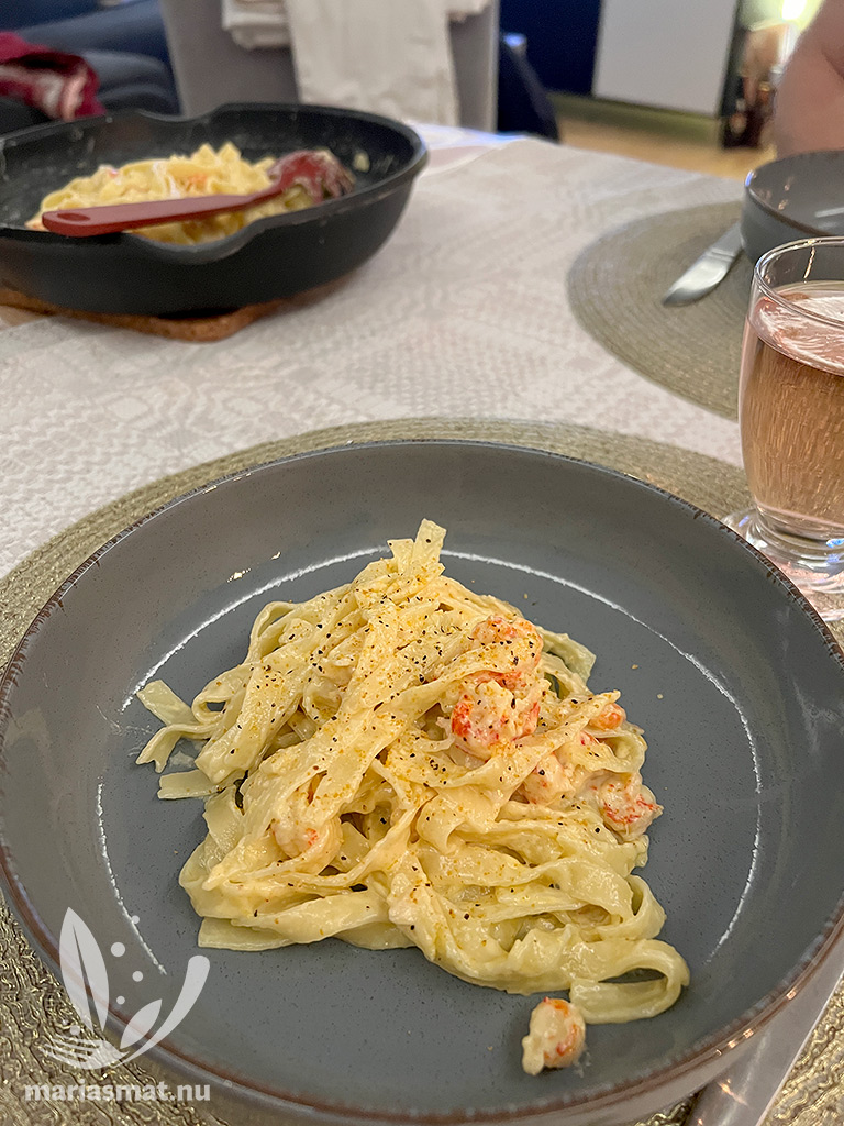 I fredags hade Daniel och jag ätit lunch ute på stan och kände oss inte så värst hungriga när det närmade sig fredagsmiddagen. Men det var ju ändå fredag, så vi ville äta någonting som ändå kändes helg och lite lyx. Jag hade ett ärende efter jobbet så Daniel fick i uppgift att göra en pasta al limone med kräftstjärtar som blev precis den middag vi önskade oss!