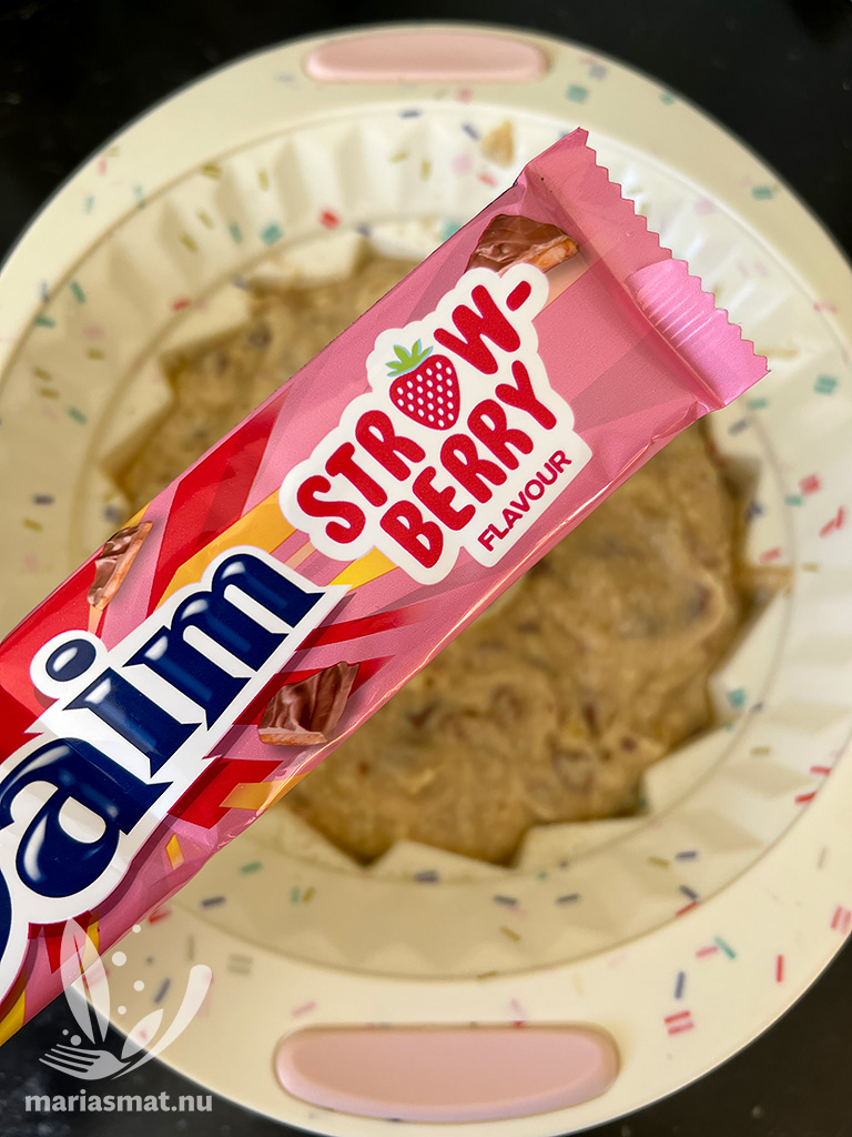 50-75 g choklad (jag tog hälften mjölkchoklad, hälften Daim)